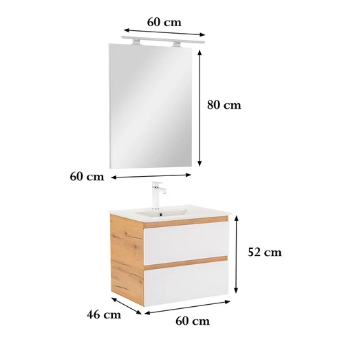 Vario Forte 60 komplett fürdőszoba bútor tölgy-fehér