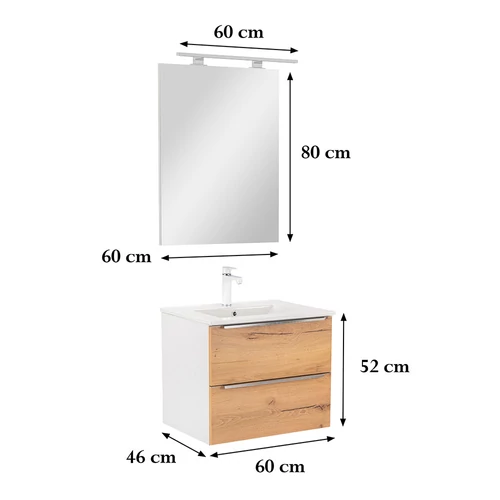 Vario Trim 60 komplett fürdőszoba bútor fehér-tölgy