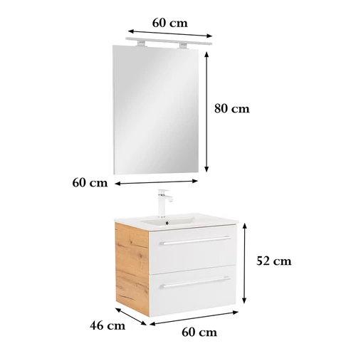 Vario Clam 60 komplett fürdőszoba bútor tölgy-fehér