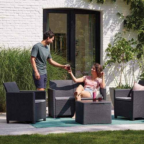 Claire 4 személyes kerti bútor garnitúra párnatartós asztallal grafit