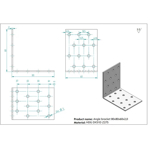 KOELNER 80x80x60mm sarokösszekötő lemez horganyzott, vastagság: 2,0mm