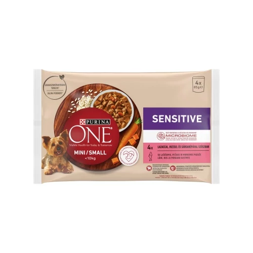 Purina ONE MINI Sensitive/Delicate nedves kutyaeledel lazaccal 4 x 85 g