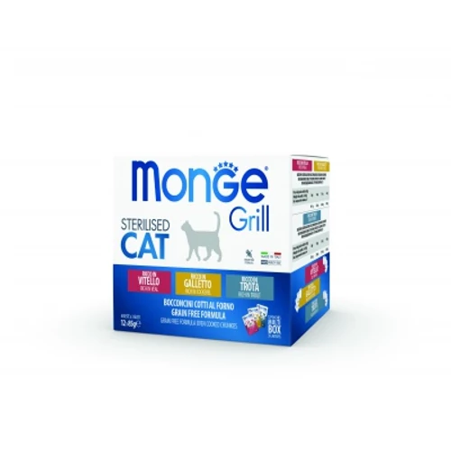 Monge Grill Cat Vegyes Falatok Aszpikban borjú/kakas/pisztráng - Steril 12x85 g 12 x 85 g