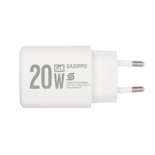 HOME SA20PPS USB hálózati gyorstöltő, 20 Watt, 2in1: USB-A + USB-C aljzat, QC + PD + PPS gyorstöltés, GaN technológia