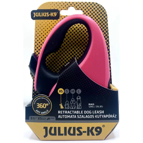 JK9 Retractable Dog Leash - automata szalagos póráz (pink-fekete) kutyák részére (XS) 3 méter
