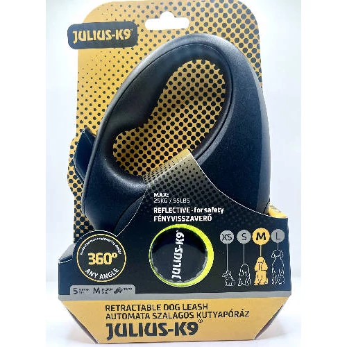 JK9 Retractable Dog Leash - automata szalagos póráz (neon sárga) kutyák részére (M) 5 méter
