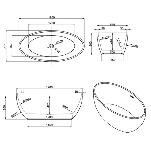 Kara szabadon álló fürdőkád 170x81x60 cm