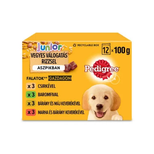Pedigree Vital Junior - Nedves eledel (csirke-,marha,-bárány,-baromfi aszpikban) kölyökkutyák részére (12x100g)