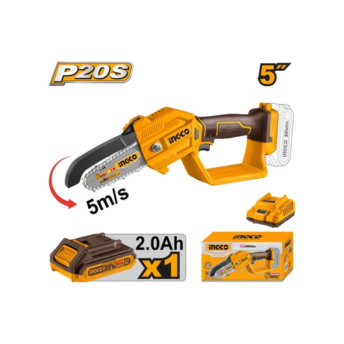 INGCO Akkus láncfűrész 127 mm 20 V (1 x 2,0 Ah akku + töltő)