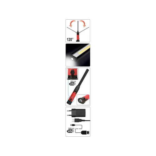 YATO 5W+3W Akkumulátoros szerelő LED lámpa – 330 lm + 80 lm, mágneses rögzítés, USB töltés