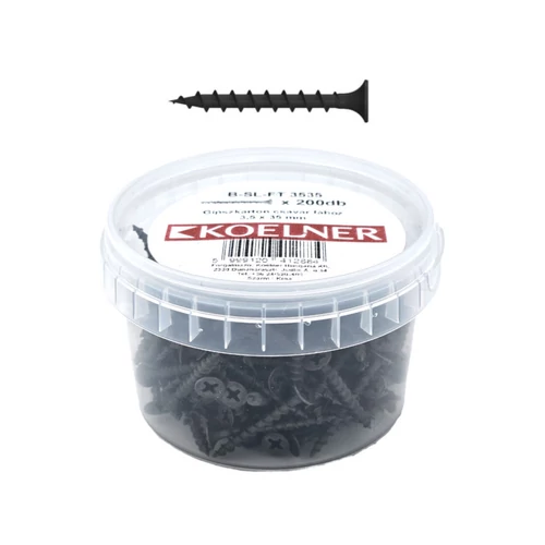 KOELNER 3,5X25mm 250db foszfátozott gipszkarton csavar fa menetes, fához, müanyag tégely B SL-FT-3525/250