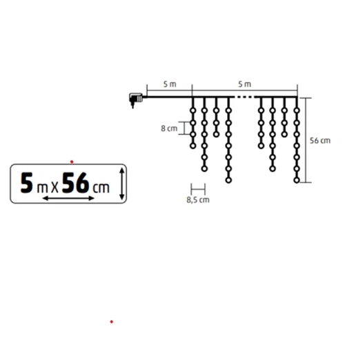 HOME KKF300D5M LED-es sziporkázó fényfüggöny, 300 db melegfehér DOT LED, átlátszó vezeték, hálózati adapter, kül- és beltéri kivitel
