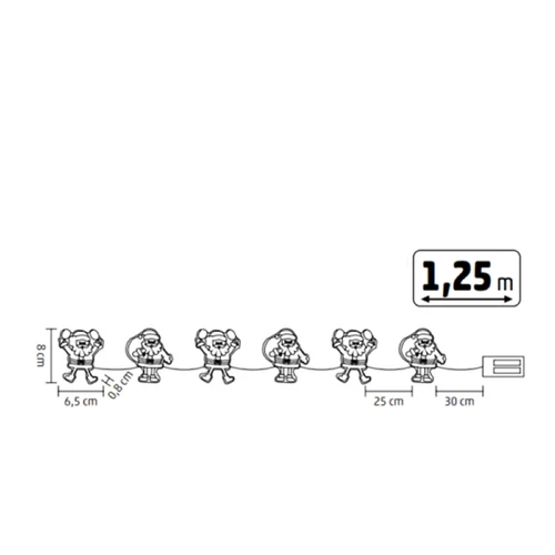 Home MLS6 LED-es mikulás fényfüzér, szilikon, 6db melegfehér LED, elemes tápellátás, beltéri kivitel