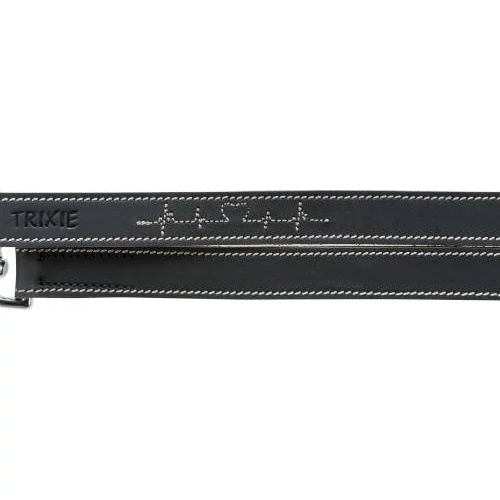 Trixie Greased Leather lead - bőr nyakörv (fekete,szívritmus mintával) kutyák részére (M-L) 2m/20mm