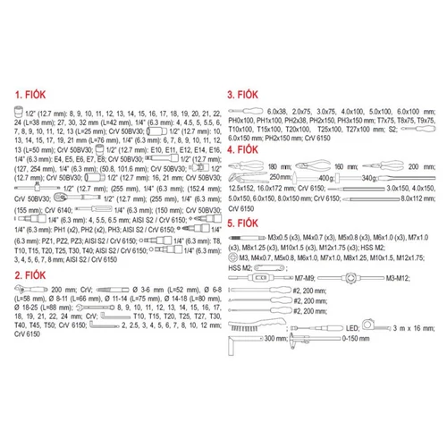 YATO 211 részes fém szerszámos kocsi szerszámokkal YT-55290