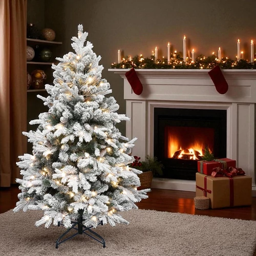 KMF8LED240 havas műfenyő LED-ekkel, 460db melegfehér LED, 8 program, 240cm magas, 144cm átmérő, 3D és 2D tűlevelek, hálózati tápellátás, beltéri kivitel