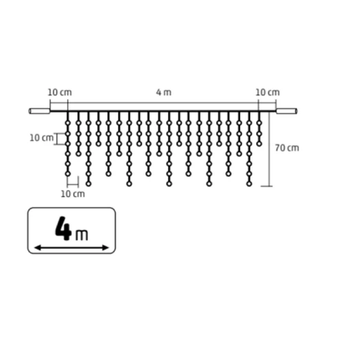 HOME KSFW200WH sorolható fényfüggöny, 4 méter, 200db hidegfehér LED, fehér vezeték, kül- és beltéri kivitel