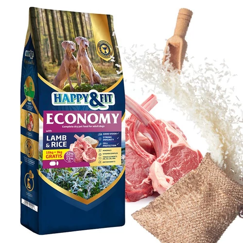Happy&Fit Natural Economy Adult with Lamb and Rice 15+3kg