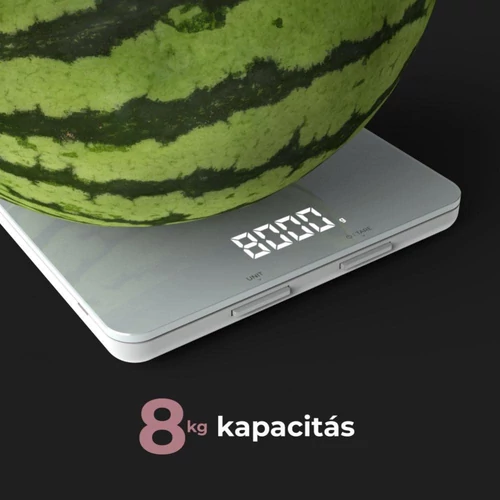 AENO AKS0001S KS1S intelligens konyhai mérleg, max. 8 kg kapacitás, LED kijelző, Bluetooth csatlakozás, edzett üvegfelület
