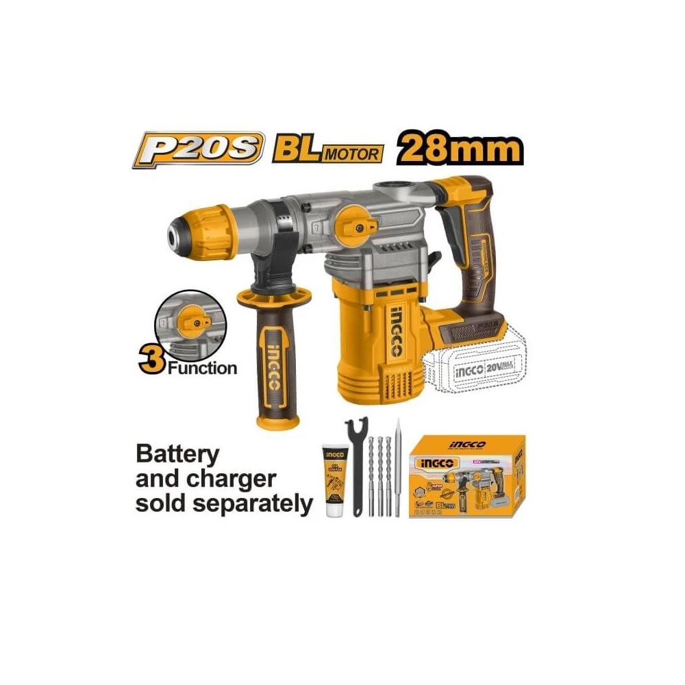 INGCO 20V 4,5J SDS-Plus akkus kombikalapács SOLO szénkefe nélküli motor