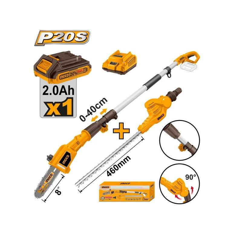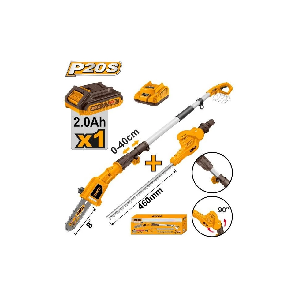 INGCO 20V akkus magassági szerszámszett sövény+ ágvágó (1x2,0 Ah akku+ töltő)