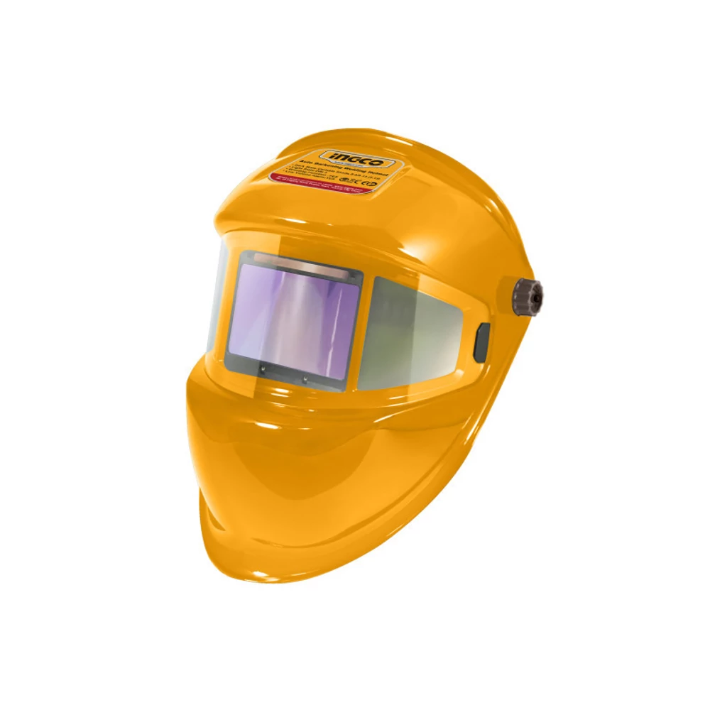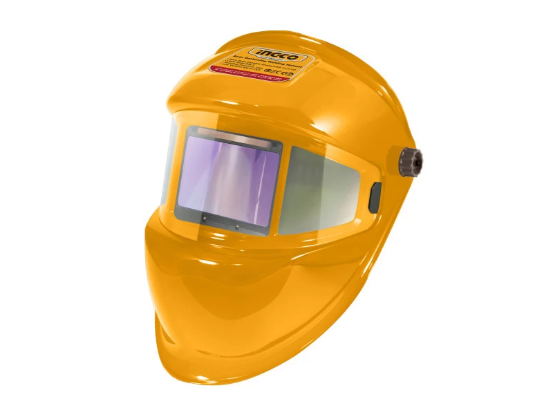 INGCO Automata hegesztőpajzs 4 szenzoros 180° látószög Mindenféle ívhegesztés (UV/IR, hő és szikra), MIG-MAG, TIG és egyéb hegesztési munkák, csiszolásvédelem1.180° panorámás HD nagy ablak, szélesebb látómező, biztosítva a legjobb vizuális kényelmet2.Dupla tükör hegesztési védelem 3.4 optikai szenzor, gyors válaszidő, csökkenti a vizuális fáradtságot 4.Új nylon anyagú borítás, integrált arcvedő, esés- és ütésálló, kényelmes és biztonságos, magas hőszigetelés, hatékony arc védelem 5.Kényelmes és állítható fejpánt izzadságfelszívó övvel 6.Alacsony akkumulátor töltöttségi jelző funkció, automatikus kapcsoló funkció 7.Csiszolási funkcióvalOptikai besorolás: 1/1/1/1Legnagyobb látóterület: 100 x 67 mmÉrzékelők száma: 4Világos állapot: DIN 3Sötét állapot: DIN 5-9 / 9-13UV/IR védelem: akár DIN 16-igÁtváltási idő (világosból sötétbe): Árnyékolás szabályozás: belső, fokozatmentesÉrzékenység szabályozás: belső, fokozatmentesKésleltetési idő (sötétből világosba): belső, fokozatmentes, 0,15-0,80 sMinimális áramerősség: ?2 amperaSisak anyaga: nylonSúly: 560 g ±5%Működési hőmérséklet: -5? (23°F) - +55? (131°F)Tárolási hőmérséklet: -20? (-4°F) - +70? (158°F)Áramellátás: napelem és 2 db cserélhető lítium elem (CR2032) Szállítási terjedelem: Kartondobozban