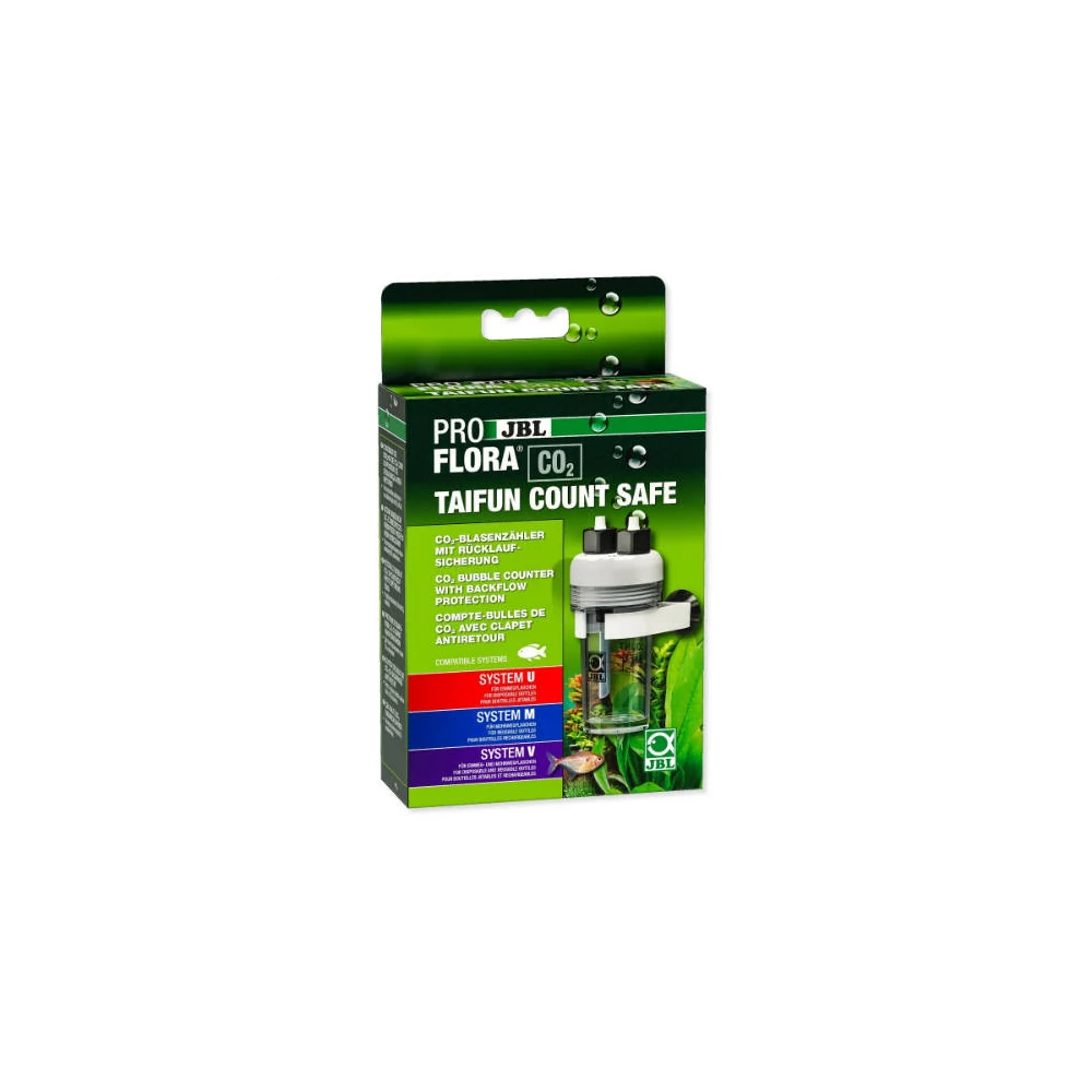 A JBL ProFlora CO2 Taifun Count Safe egy megbízható CO2 buborékszámláló, amely beépített visszacsapó szeleppel rendelkezik, így megakadályozza a víz visszaáramlását a CO2 rendszerbe. A nagyított, átlátszó kamra lehetővé teszi a buborékok pontos számolását, így könnyedén szabályozhatjuk a CO2 adagolását. A készülék könnyen telepíthető az akvárium külső részére, és biztonságos csőcsatlakozásokkal van ellátva, amelyek megakadályozzák a csövek véletlen lecsúszását.