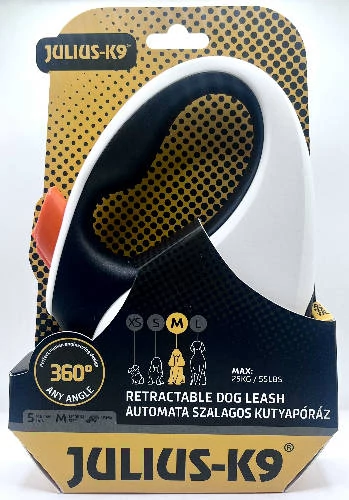 JK9 Retractable Dog Leash - automata szalagos póráz (fekete-fehér-narancs) kutyák részére (M) 5 méter