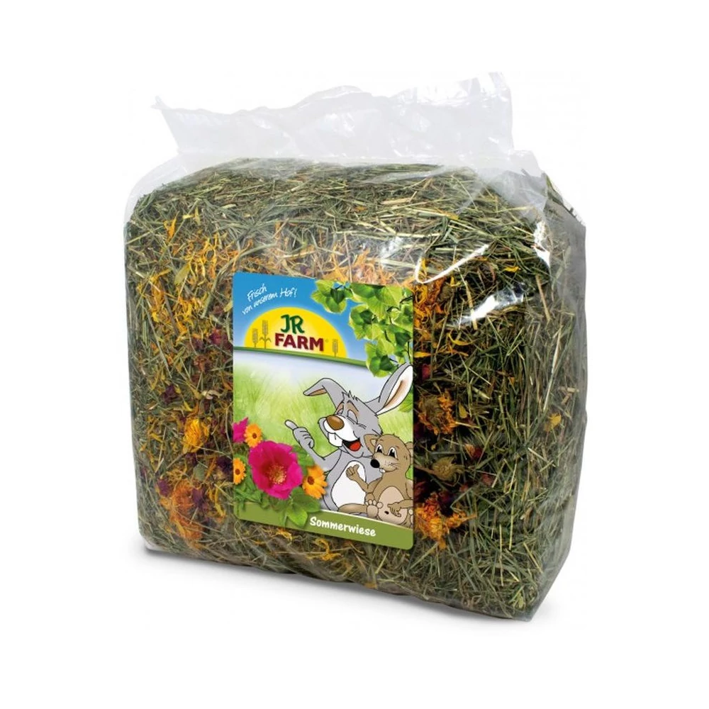 A JR Farm széna nyári mező természetes, egészséges kiegészítő eledel minden rágcsáló és törpenyúl számára. A termék jellemzői: - gondosan szárított, rendkívül ízletes széna, melyben bőséges a lágyszárú növények, fűfélék és levelek tartalma - aromás nyári virágokkal gazdagítva - szuper prémium minőségű széna minden ínyenc rágcsáló számára. Etetési javaslat: Természetes szénával vagy más gyógynövényekkel keverhető, vagy kiegészítésként adható a napi szénaadaghoz. A száraz takarmány mellé mindig biztosítson friss vizet a kisállatoknak. Összetétel: Az Alpok lábánál fekvő hegyi rét szénája, körömvirág 3%, hibiszkusz virág 1,5 % és rózsavirág