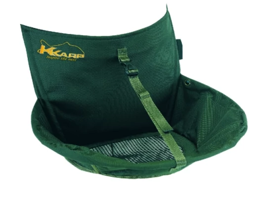 Praktikus bojlis melltáska etetéshez. Mellpánttal rögzíthető. Felgyorsítja a csöves, és csúzlist etetést és növeli az etetés pontosságát. A táska alja hálós, hogy a bojli minősége sokáig megmaradjon. Mérete: 13*35*47cm