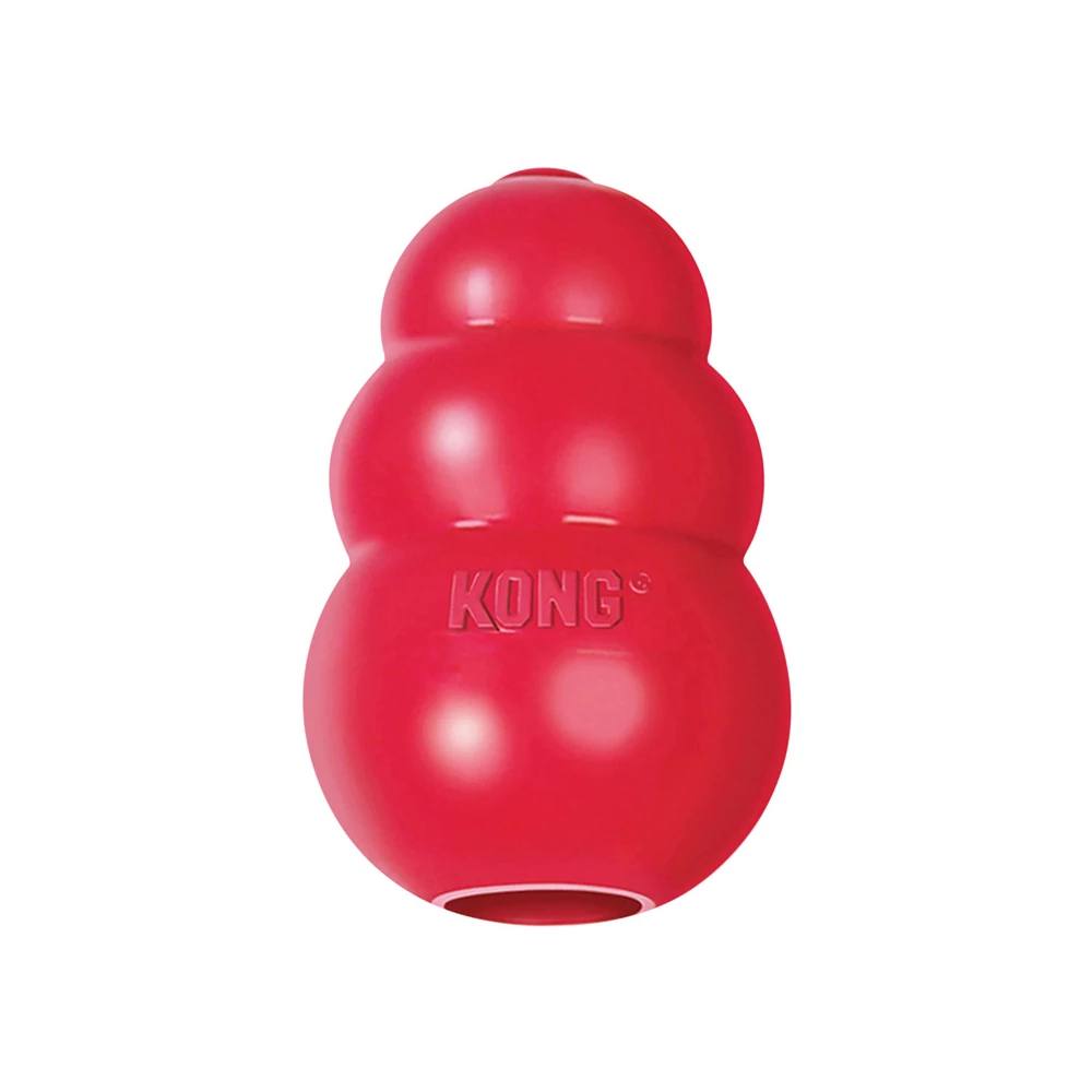 Kong - Medium Classic játék kutyáknak A KONG játék egyedülálló természetes gumi összetevői utánozhatatlanok ellenállóságukat tartósságukat és pattogási képességüket tekintve. Rágcsálás barát nem mérgező nem dörzsölő és nem válik élessé vagy szálkássá a rágástól. A felmérések azt mutatják hogy az állatorvosok és kutya idomárok a KONG játékokat ajánlják a legtöbbször világszerte. Kiválóan le tudja foglalni kedvencét ha KONG játékait ízesített pasztával vagy jutalomfalattal tölti meg. A töltött KONG kutyajátékok széles körben használatosak és állatorvosok különböző terápiás trénerek -mint például az unalom-megelőzés a szeparációs szorongás illetve más viselkedési problémák szakértői- által is ajánlottak. A klasszikus KONG öt rágóbarát méretben áll a különböző rágótemperamentummal rendelkező kutyák rendelkezésére. Kiszámíthatatlanul rugalmas vonzereje a kutyák többségét bevonja egy kergetőző „kapd el és