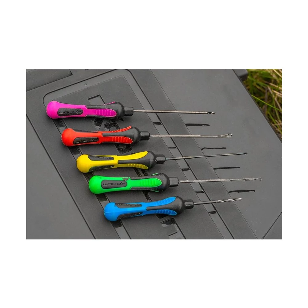 Alapvető eszközök, amelyek kielégítik a horgász összes csalizási és kötözési igényét. Alacsony csillogású Ti-bevonat felhasználásával készültek a maximális szilárdság és tartósság érdekében. Az ergonómikusan kialakított fogantyúkat úgy tervezték, hogy kényelmesek legyenek a kézben, puha tapintású felülettel és jól látható anyagból készültek, így gyenge fényviszonyok mellett is könnyen megtalálhatóak.