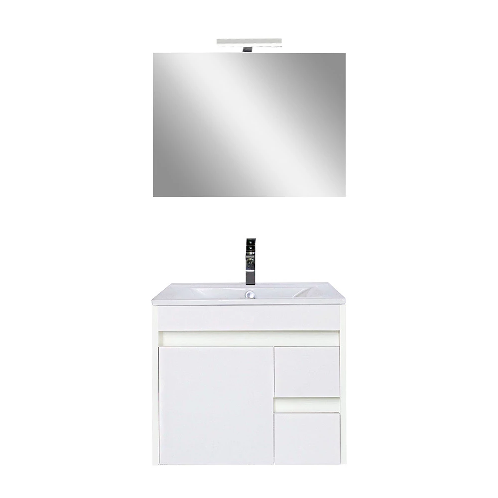 A fürdőszoba bútor tágas kialakítással rendelkezik ahol kényelmesen elférnek a fürdőszobai pipere eszközök. Kompakt kialakítása miatt kisebb fürdőszobák berendezésére is alkalmas, például panel lakásokban. A termék magas minőségű bútorlapból készül és színben passzoló élzárókkal van ellátva. A fürdőszoba bútor felfüggesztett kivitelben kapható.