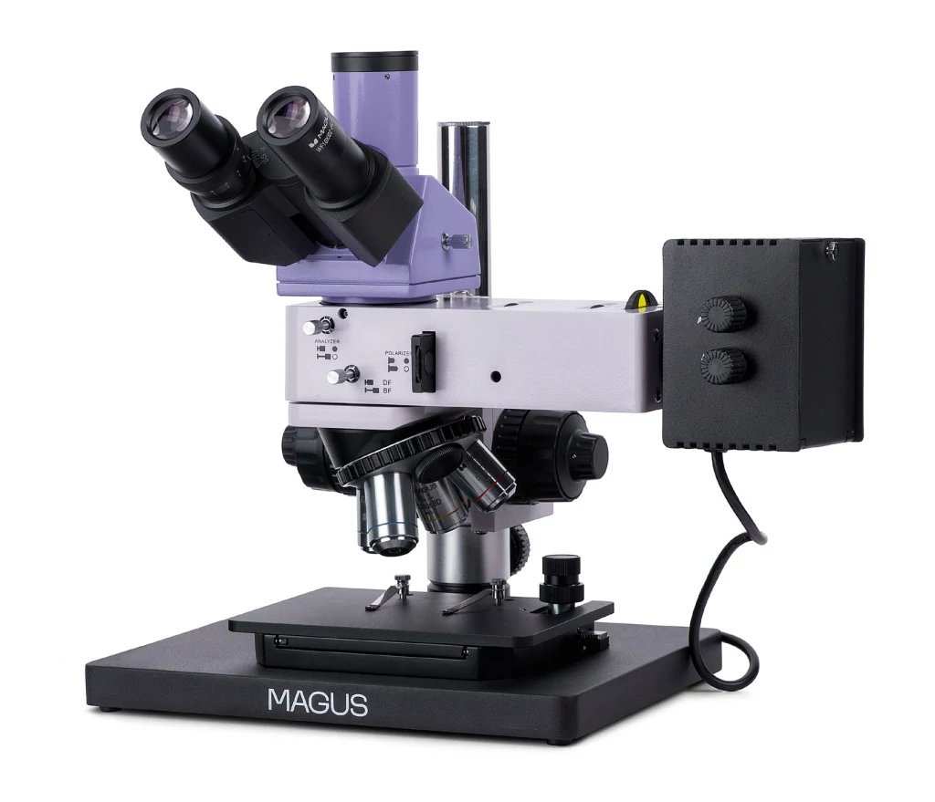 Nagyítás: 50–500х. Kompakt mikroszkóp állvány, háromszemes fejrész, akromatikus objektívek világos látóterű és sötét látóterű mikroszkópiai technikákhoz, 50 W-os halogén fényvisszaverő világítás Nagyítás: 50–500х. Kompakt mikroszkóp állvány, háromszemes fejrész, akromatikus objektívek világos látóterű és sötét látóterű mikroszkópiai technikákhoz, 50 W-os halogén fényvisszaverő világítás