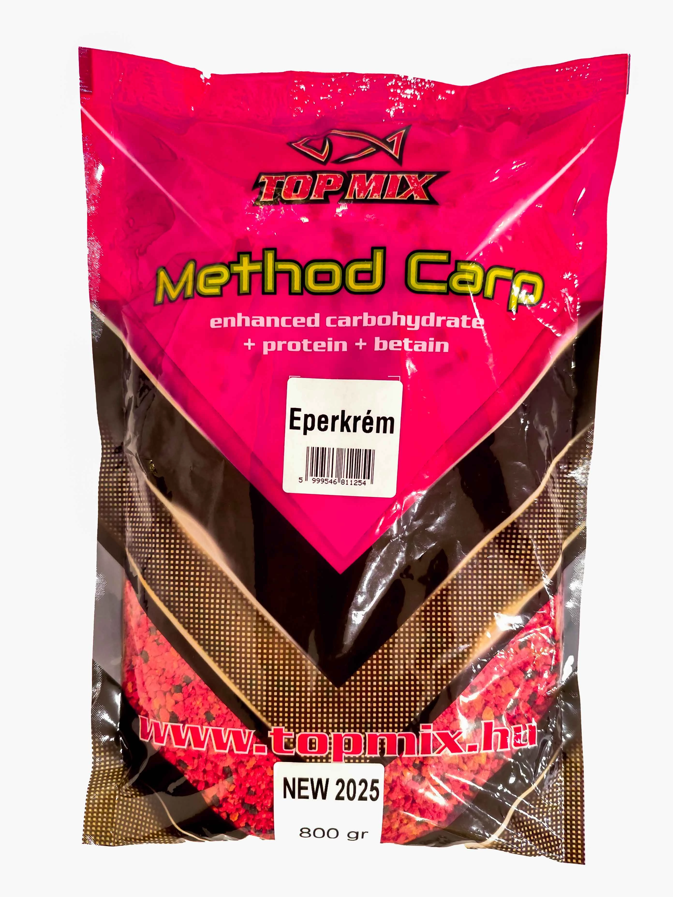 A Method Carp etetők jellemzője, hogy a finom szemcséket lecseréltük nagyobb méretűre és nyers összetevőket nem használunk a gyártásánál. Sok benne a színes, a halak kíváncsiságát is felkeltő szemcse. Az új gyártástechnológiából adódó összetevők, a nagyobb szemcseméret igen gyors bontást eredményeznek és segítenek abban, hogy az igazi nagytestű halakat is horogra tudjuk csalni. Megfelelő nedvesítés mellett az etetők tapadása és bontása is tökéletes. A jól kiegyensúlyozott beltartalom (szénhidrát, protein, betain) vonzó táplálék lehet a pontyoknak, pontyféléknek, minden évszakban. Az eper egy igazi klasszikus íz, amit ötvöztünk az édes karamellel, így lett ez az aroma még intenzívebb és fogósabb. Az önmagában is feltűnő szemcsékből álló etetőanyag tartalmaz szénhidrátot, betaint valamint proteint, ami még jobban fokozza csalogató hatását a halak számára. Természetes vizeink lakói is előszeretettel keresik meg a kosarunkat, ha ezzel az etetőanyaggal töltjük meg, de az intenzíven telepített tavakon nagy sikereket érhetünk el vele. Ez az etetőanyag minden évszakban használható.