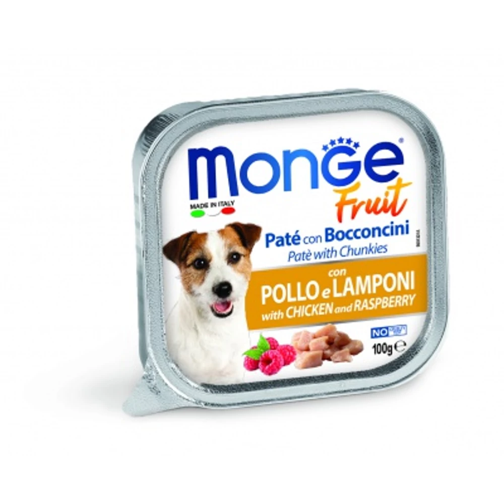 Friss hús 80% (csirke min. 10%), málna (4,0%), ásványi anyagok, vitaminok.
