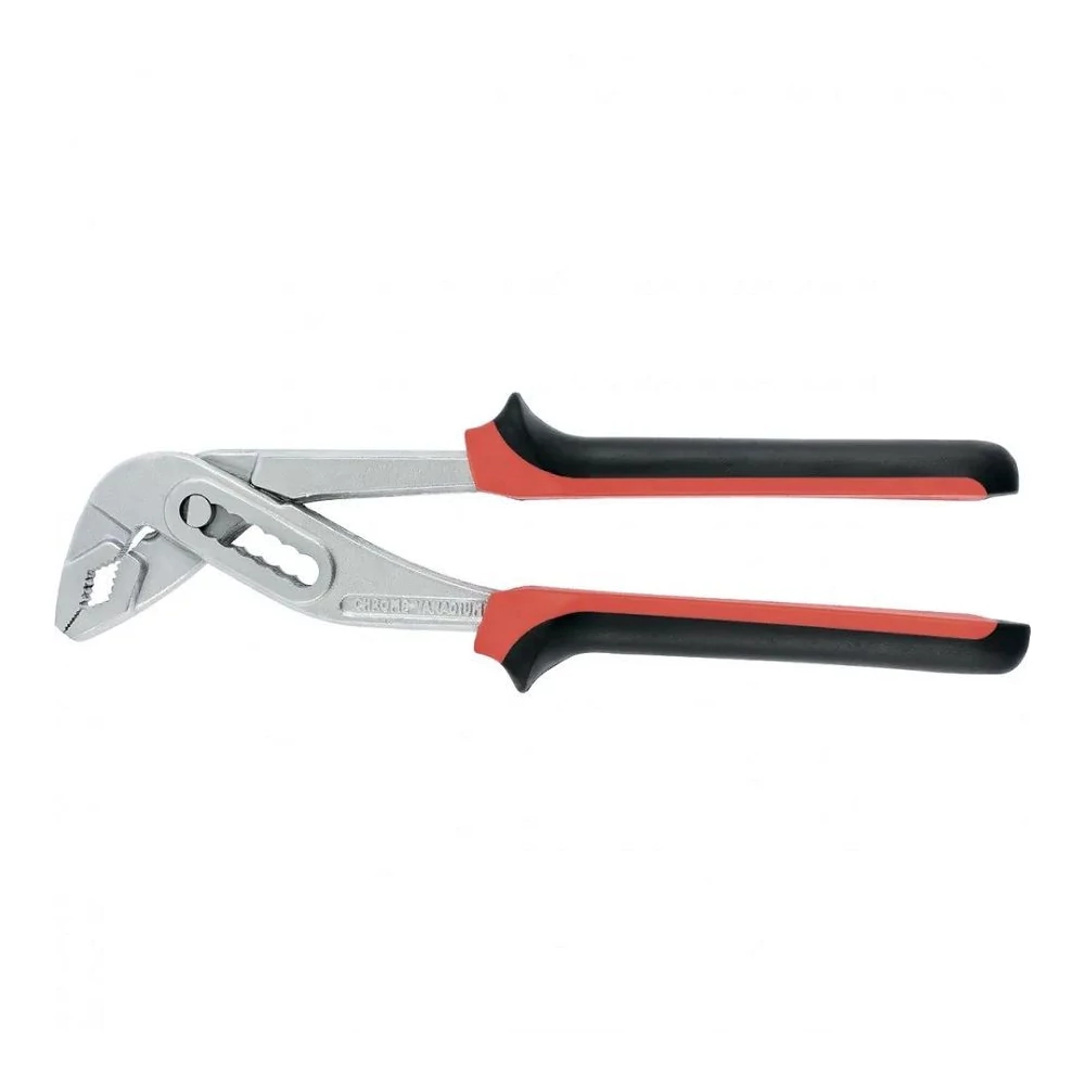 Króm-vanádiumból készül fogó kényelmes, tartós kétkomponensû vastag gumibetétes nyéllel. A pofákon éles bevágás van, amely biztosítja azoknak a tárgyaknak a meg fogásást, amelyek nem rendelkeznek speciális munkafelülettel, pl. csövek, stb. Különbözõ formájú és méretû tárgyak rögzítésére, fogására, csavarására szolgál, csöveken fogóként, vagy állítható csavarkulcsként használható. Így is ismerheted: csõfogó, állítható fogó, vízpumpa fogó, papagáj fogó