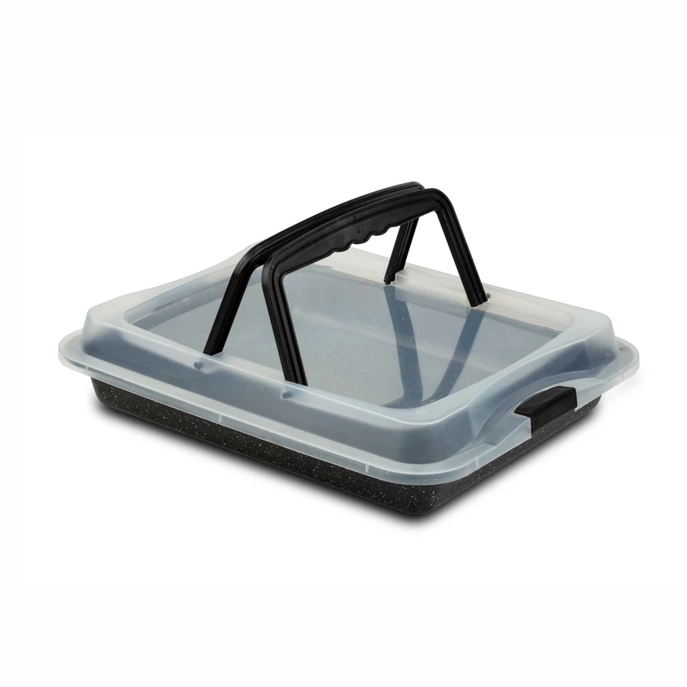 Szeretne könnyedén sütni, tálalni és tárolni egyetlen praktikus edény segítségével? A NAVA 10-103-151 Nature sütőedény fedővel tökéletes választás mindazok számára, akik szeretik a kényelmes és sokoldalú konyhai megoldásokat. A 40 × 32,5 cm méretű, 5 cm magas szénacél sütőedény ideális nagyobb adagok elkészítéséhez, legyen szó sült húsokról, rakott ételekről vagy házi süteményekről. Tapadásmentes kőbevonata megkönnyíti a sütést és a tisztítást, miközben egyenletes hőeloszlást biztosít, hogy minden fogás tökéletesen átsüljön. Kényelmes használat és modern kivitel A sütőedény szénacélból készült, amely könnyű, mégis tartós, így hosszú távon is megbízható társ lesz a konyhában. A 0,4 mm vastagságú kialakítás gondoskodik arról, hogy az edény jól bírja a magas hőmérsékletet, miközben nem nehezíti meg a mindennapi használatot. A hozzá tartozó kapcsos műanyag fedél hordfüllel lehetővé teszi az elkészült ételek biztonságos szállítását és higiénikus tárolását – tökéletes, ha vendégségbe vagy piknikre visz süteményt vagy rakott ételt. Praktikus méret a családi fogásokhoz A 40 × 32,5 cm-es felület elegendő helyet kínál nagyobb adag ételek elkészítésére, így ideális választás családi ebédekhez, ünnepi fogásokhoz vagy baráti összejövetelekre. Mindössze 0,97 kg-os súlyával könnyen kezelhető, így mozgatása a konyhában vagy szállítás közben sem jelent kihívást. Miért érdemes a NAVA Nature sütőedényt választani? - Tapadásmentes kőbevonat a könnyű sütéshez és tisztításhoz - Tartós szénacél kivitel, amely hosszú élettartamot biztosít - Kapcsos műanyag fedél hordfüllel a biztonságos szállításért és tárolásért - Praktikus, nagy méret családi és vendégségi fogásokhoz - Könnyű, mindössze 0,97 kg-os súly, ami egyszerű kezelhetőséget biztosít Varázsolja egyszerűbbé a sütést és tálalást egy modern, praktikus edénnyel! Válassza a NAVA 10-103-151 Nature sütőedényt fedővel, és élvezze a kényelmet, a minőséget és a stílust minden egyes alkalommal, amikor főz vagy vendégeket lát vendégül!