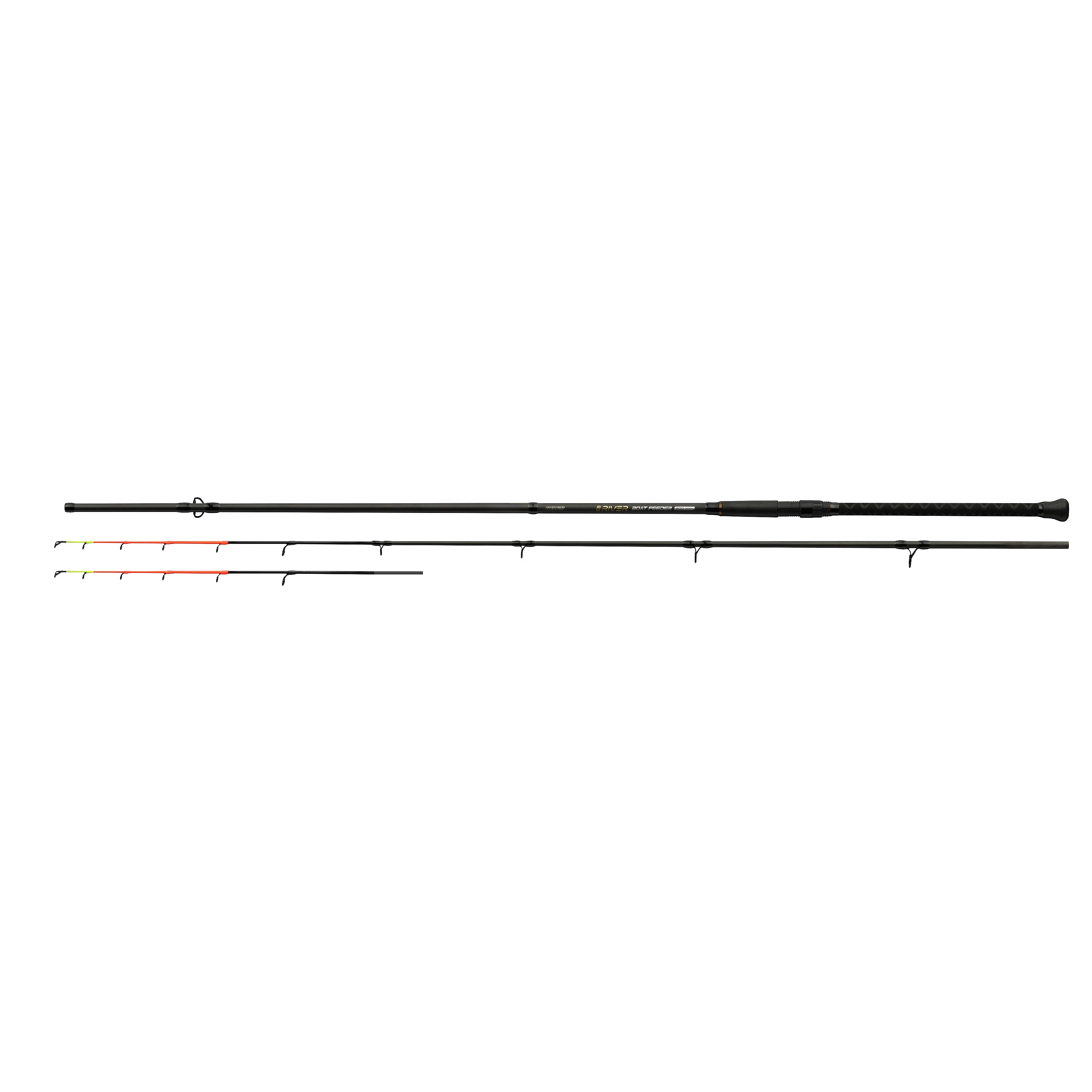 Igazi folyóvizi harcos ez az új botcsalád! Az eddig megszokott folyovizi feederekhez képest egy sokkal keményebb bottest jellemzi, ami lehetővé teszi igazán nagy testű halak kifárasztását. Az volt a cél, hogy a folyóvízi feederezés során beköszönő nagyobb testű halak (harcsák, márnák, pontyok) kifárasztása se okozzon gondot. Minden paramétere a folyóvizi feederezés igényeit alapul véve lett kialakitva. A nyélrészen nagyobb méretű zárókupak kapott helyet, amely jól bírja a kopást és kényelmes betámasztást tesz lehetővé a nagyobb fárasztások során. A nyél finom felületű zsugoritott bevonatot kapott, amely könnyen tisztítható és kevésbe sérülékeny. Az orsótartó is egy kézreálló típus, amelyen nem tapad meg az etetőanyag és a kosz, az orsót pedig igen stabilan fogja. A gyűrűzése a folyóvíz modelljeinken már bevált erősített acélkeretű SIC gyűrűkkel történt, amelyek dupla lábas kivitelűek. Ezek garantáltan nem sérülnek meg akkor sem, ha botunk eldől a köves terepen. A rezgőspiccek nagyméretű zsinórvezető gyűrűket kaptak, ami nem csak lehetővé teszi a vastagabb zsinór használatát, hanem téli időszakban sem fagy be, illetve a nyárfaszösz sem tudja eltömiteni. A HM Carbon-ból készült bottest igen feszes akcióval rendelkezik, emellett nagyon könnyű is. Lehetővé teszi extra méretű ólmok és etetőkosarak nagy távolságra történő bedobását.