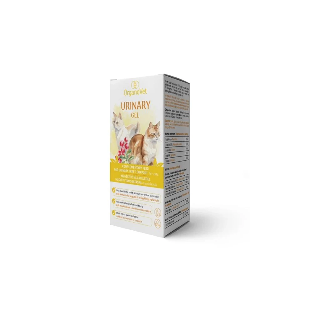 - A készítmény neve OrganoVet Urinary 50 ml gel - Termékforma (pl. oldat, gél, permet, egyéb) gél - A készítmény összetétele Szorbit, glicerin, N-acetil-D-glükózamin, hidrolizált halfehérje, hidrolizált állati fehérje, vörösáfonya kivonat, halolaj (Omega-3), hialuronsav Adalékanyagok (mililiterenként) Vitaminok: 3a820 B1-vitamin (Tiamin HCl) 0,12mg 3a831 B6-vitamin (Piridoxin) 0,01mg 3a315 B3-vitamin (Niacinamid) 0,6mg Aminosavak, sóik és analógjaik: 3c440 L-triptofán 50mg Aromaanyagok: 2b Camellia sinensis 0,075mg - Célállatfajok macska - A készítmény felhasználási területének rövid leírása, felhasználási javaslat Az OrganoVet Urinary 50 ml gel a macskák húgyhólyagjának támogatására szolgál, különösen a hólyag glikozaminoglikán rétegének megerősítésére. Csökkenti a stresszt és a szorongást, valamint a hólyagban lévő gyulladást. Védi a hólyagot az irritáló anyagokkal szemben. Hidrolizált halfehérje: - nyugtatja és regenerálja a gyomor nyálkahártyáját - energiaforrásként szolgál Hialuronsav: - a húgyhólyag belső védőrétegének egyik fő alkotóeleme Vörösáfonya kivonat: - segít fenntartani a húgyutak és a húgyhólyag egészségét - megakadályozza a baktériumok szaporodását, amelyek a betegségek kialakulásához vezetnek Omega-3 (EPA és DHA): - gyulladáscsökkentő hatású N-acetil-D-glükozamin: - a hólyag belső bevonó rétegének integritásánál játszik fontos szerepet, amely védelmet nyújt a vizelettel toxinokkal és baktériumokkal szemben L-Triptofán - segít az állat viselkedésének szabályozásában, csökkenti a szorongást B1, B3 és B6 vitamin: - az idegrendszer egészséges működéséhez nélkülözhetetlenek Camellia Sinensis: - segíti a káros méreganyagok kiürülését a szervezetből - oldja a szorongást Az OrganoVEt Urinary 50 ml gel L-triptofánt és halfehérje hidrolizátumot tartalmaz, mely segít megnyugtatni és ellazítani a macskát. A termék hasznos lehet stresszhelyzetek kezelésében, mint például mennydörgés és villámlás, tűzijáték, utazás stb. - Etetési javaslat és az alkalmazás módja Keverhető eledelhez, adható közvetlenül a macska szájába, vagy a mancsára helyezve az állat lenyalogatja. Súly Első hónap Hosszú távú használat 0 – 4 kg 1 pumpányi (2 ml) naponta 1 pumpányi (1 ml) naponta 4 kg fölött 2 pumpányi (4 ml) naponta 1 pumpányi (2 ml) naponta - Óvintézkedések Kizárólag állati felhasználásra. Gyermekektől elzárva tartandó. Emberi fogyasztásra nem alkalmas. - Lejárati idő 36 hónap eredeti, bontatlan csomagolásban Felbontás után 3 hónapon belül felhasználandó - Tárolási előírások Hűvös, száraz helyen tárolandó. Közvetlen napfénytől távol tartandó. - Csomagolás (a tartály vagy csomagolóanyag jellege, kiszerelési egységek) 50 ml-es tartály 2 ml-es adagolópumpával - „Gyermekek elől elzárva tartandó!” felirat - A fel nem használt anyag és a hulladék kezelésének módja A fel nem használt terméket, valamint a keletkező hulladékokat a helyi követelményeknek megfelelően kell megsemmisíteni.