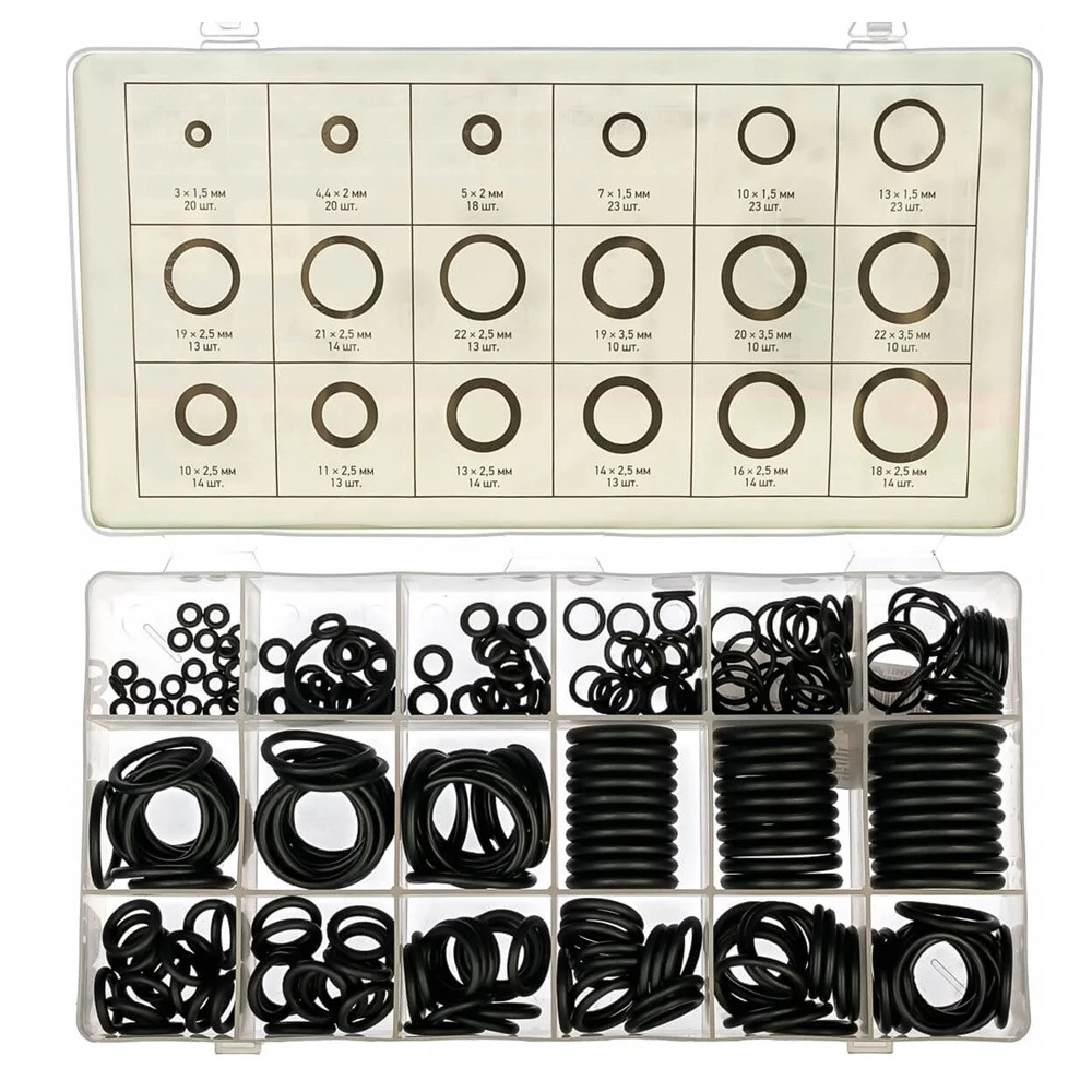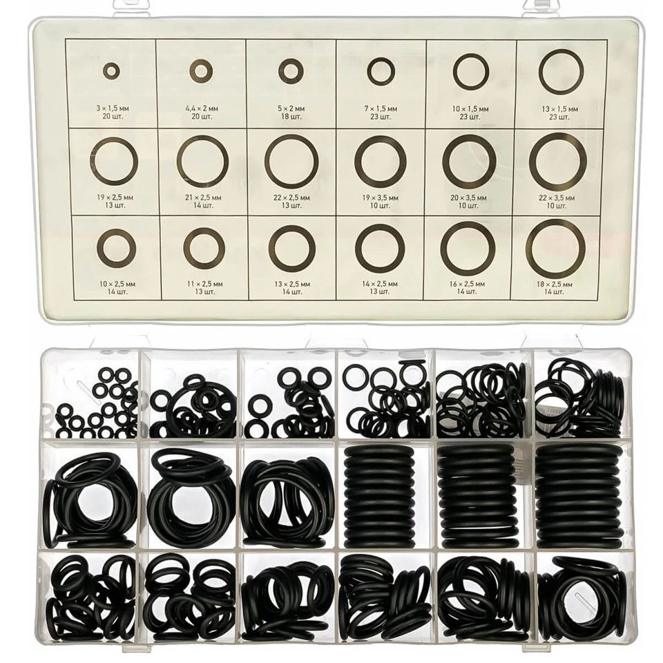 O-gyűrű tömítés készlet 18 féle méretben, 279db. Praktikus műanyag tárolóban, melyben mindig minden a helyén lehet, így Ön könnyedén megtalálja a szükséges gyűrűt a javítás közben.Kopásállóság - a gyűrűk olaj- és benzinálló gumiból készülnek.Gyorsan megtalálja a szükséges tömítést - az O-gyűrűk méret szerint vannak rendezve.Kényelmes tárolás és szállítás - a készlet műanyag tokba van csomagolva.