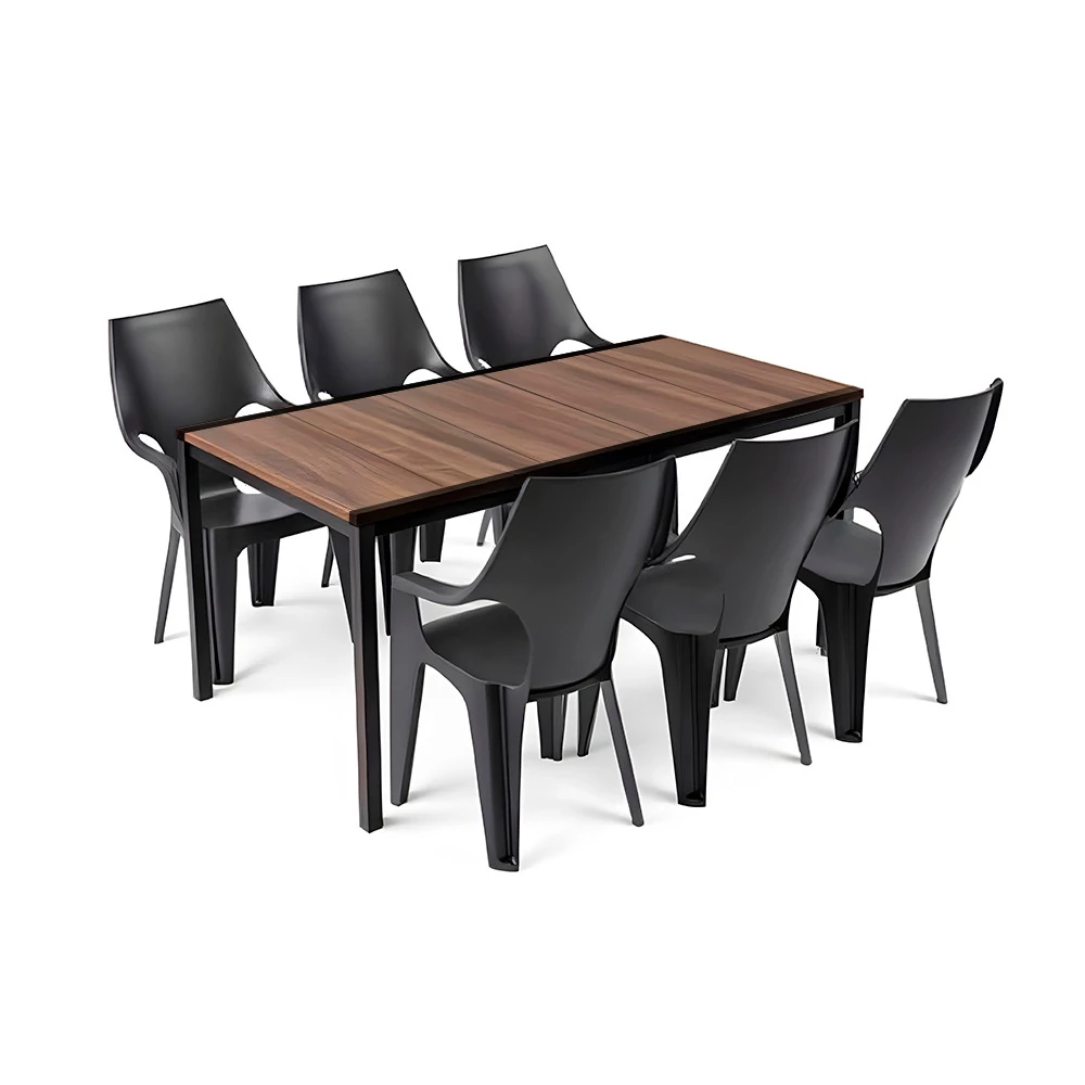 Modern dió & grafit kontraszt – prémium látvány bármely kertbenA meleg dió asztallap és a hűvös grafit székek elegáns, kortárs megjelenést adnak. Legyen a teraszod skandináv, mediterrán vagy ipari hangulatú, a Parker Large kifinomult középponttá válik.