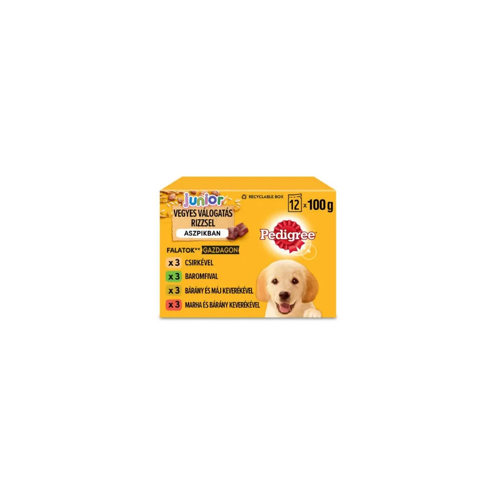 Pedigree Vital Junior - Nedves eledel (csirke-,marha,-bárány,-baromfi aszpikban) kölyökkutyák részére (12x100g)