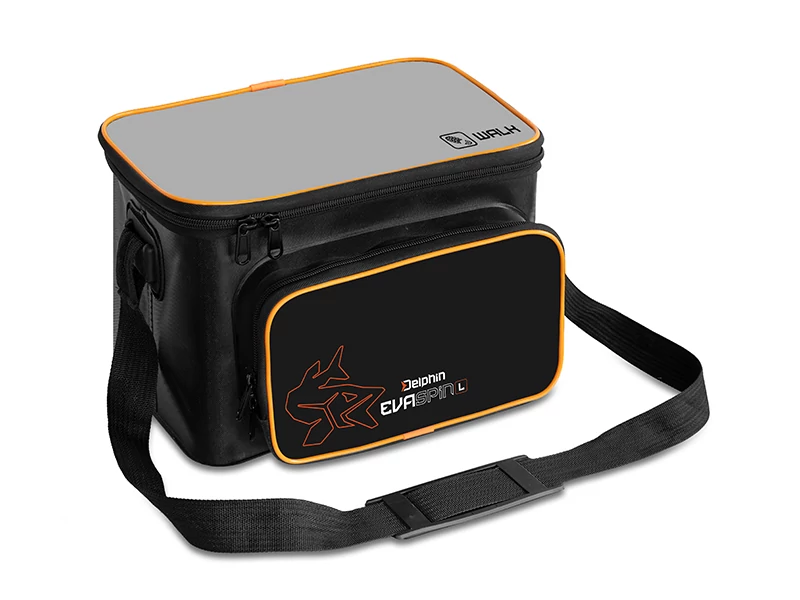 Praktikus pergetőtáska minőségi EVA anyagból, amely elegendő helyet kínál a ragadozóhalas horgászathoz szükséges csalik és kiegészítők tárolására. A vízálló EVA anyag és a Delphin EvaSPIN WALK kiváló minőségű varrásai megbízható védelmet nyújtanak még kedvezőtlen időjárási körülmények között is. Anyaga könnyen tisztítható, és nem szívja magába a szagokat, ami különösen hasznos, ha különféle folyadékokat (pl. aromákat) szállítunk a táskában. Az elülső részen található cipzáras zseb további tárolóhelyet biztosít kisebb kiegészítők számára, így még praktikusabbá téve a táskát. Az EvaSPIN pergetőtáskák modern megjelenésükkel tűnnek ki, melyben a fekete és szürke szín narancssárga elemekkel – például egy csuka logóval – egészül ki. A táska állítható vállpánttal rendelkezik a kényelmes szállítás érdekében. A táska belső rekeszébe különféle műanyag dobozok helyezhetők, például a Delphin TBX One 225-15P. Az elülső zsebbe pedig ideálisan illeszkedik például a Delphin TBX One 210-6P doboz, valamint mások is. Technikai adatok: Méret: 31x21x19cm Első zseb mérete: 24x5x17cm Űrtartalom: 12L