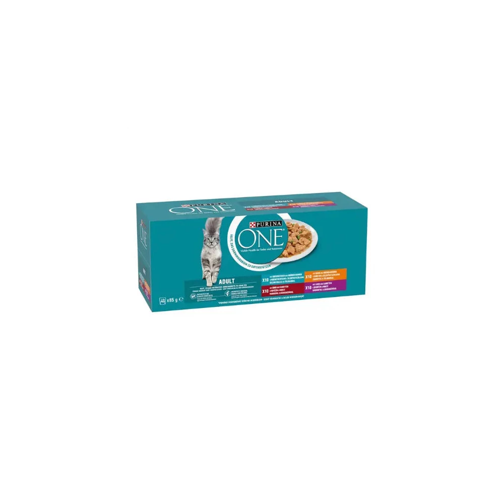 Purina One Adult, csirkével/marhával/tengeri hallal szószban nedves macskaeledel 40x85g
