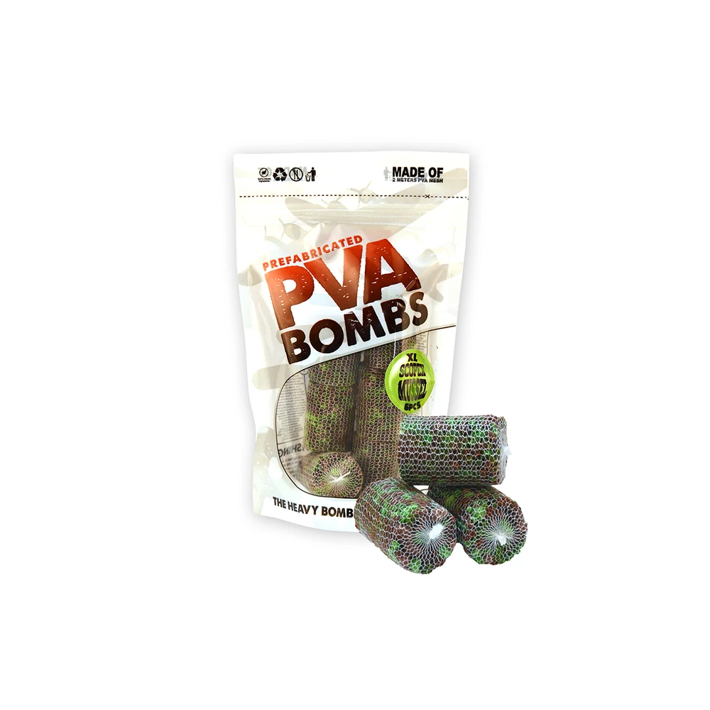 PVA Bombs A PVA BOMBS két méter, magas minőségű PVA hálóba töltött, speciális összetevőkből álló csalogatóanyagot tartalmaz. A csomagban található 20 db. PVA töltet ami a magasnyomású, precíziós betöltő eljárásnak köszönhetően a mederfenékre érés után szinte azonnal szétrobban a csali körül. Segítségével precíz csalogatóhatást érhetünk el, anélkül, hogy a vízparton kellene töltögetnünk az egyébként sérülékeny PVA hálót. Minden egyes zsákocska mögött hosszú évek versenytapasztalata, több ezer vízparton töltött óra van. A PVA BOMBS a speciális helyzetekhez is igazodva több különféle ízben kerül forgalomba, így minden szituációban eredményesen használható, melyek íz és beltartalmuktól függetlenül PVA barát dippel vagy locsolóval még vonzóbbá tehetők. Minden termék a haltakarmányozásban is használt magas minőségű kiváló beltartalommal bíró haltáp-keveréket és hozzáadott aminosavakat, omega-3 zsírsavakban gazdag halolajat és a tápanyag hasznosítást segítő esszenciális olajokat tartalmaz. PROFESSZIONÁLIS TERMÉK, NEM CSAK PROFIKNAK! Halas-májas - Növényi és állati fehérjékben gazda,g változó szemcseméretű, vízben jól oldódó őrlemények keveréke. Májliszt tartalma meghaladja az 5%-ot, az össz' protein tartalma 30% feletti. A keverék minőségét kiváló minőségű halolaj hozzáadásával növeltük. Elsősorban 18 °C feletti vízhőmérsékletben ajánlott a használata, de meglepő eredményeket produkált 15 °C alatti vizekben is. Számos rekord kapcsolódik ehhez a keverékhez. Méz-virágpor - Eredően a méz az egyik legrégebbi pontycsalogató anyag. A virágpor vitaminokban és aminosavakban gazdag, ezért ezt a keveréket a pontyok előszeretettel keresik és fogyasztják. A mix tartalmaz apróra őrölt és durvára tört olajos magvakat illetve magas beltartalmi értékkel bíró, a haltakarmányozásban is jó eredménnyel használt pelletőrleményeket. Ez az íz és illatkombináció elsősorban a tavaszi és őszi időszakban ajánlott. Ánizs-fűszer - A horgászatban régóta ismert, mára talán elfeledett íz az ánizsé. Pedig magas olajtartalma és jellegzetes aromája igen jó hatással van a halak táplálkozására. Ebben a keverékben az ánizs esszenciális olajként szerepel. 2%-ban tartalmas Robin Red-et, mely köztudottan önmagában is nagy csalogatóhatással bír. Igen magas protein tartalommal rendelkezik, a keverék 72%-os LT hallisztet, magas vízoldékonysággal rendelkező tejszármazékot tartalmaz, mely elősegíti a vízben a PVA háló feloldódása után a beltartalmi értékek gyors kioldódását. Minden évszakban eredményesen használható, akár felmelegedő vizekben, vagy a rekkenő hőségben is. Atom-pellet mix - Változó méretű, magas állati fehérjetartalmú és kiváló minőségű szénhidrát tartalmú pelletekből összeállított keverék. A keveréket előállítás során melaszban áztatjuk, amely csak ez után kerül betöltésre. Melaszt azért használunk, mert magas természetes betain tartalommal bír, ami köztudottan étvágyfokozó hatású. A változó méretű pellettartalma miatt a csalinkat koncentráltan, folyamatosan oldódó csalogatóanyag veszi körül. Az ATOM-PELLET MIX a szénhidrátot is tartalmazó pelletkeverékek miatt a felmelegedő vízben a nagy energiatartalommal bíró táplálékot kereső pontyok kedvelt csemegéje. Amino-Melasz mix - Hatféle tört mag keverékét tartalmazó mix, (kukorica, tigrismogyoró, kender, sárga és vörös köles illetve repce) amely magkeveréket áztatás és főzés előtt speciális technológiával durva szemcsézetűre őrölünk. A melaszban kifőzött keveréket PVA hálóba töltjük. A klasszikus főtt magvak az év minden szakában igen jó eredményekkel működnek. Az Amino-Melasz Mix magas melasztartalma miatt lassabban oldódik és tovább fejti ki hatását. A Bomb család, 2020-tól, 5 új ízzel bővült, az Amino Krill, Amino Chili, Amino-fokhagyma, Amino csoki-karamell és a legkellemesebb Scopex-vanília ízekkel, megoldást garantálva a legkülönbözőbb helyzetekre. Ezek az új csalogatóanyagok a magas fehérje és beltartalmi értékük mellett, igazán magas aminosav tartalmuknak köszönhetően is kiváló eredményt garantálnak a horgászok számára, érdemes kísérletezni használatukkal, az eredmény nem fog elmaradni, prémium minőségű termék. " A PVA termék használata és annak betöltése megfelelő minőségben nem egyszerű, esős időben kifejezetten körülményes feladat. A PVA BOMBS zsákocskáit a csomagolásból kibontva a horogra akasztva, illetve az előkére fűzve azonnal használható. Ezt a tulajdonságát részesítjük nagy előnyben a versenyeken is ahol a gyorsaság sokat számít. A PVA BOMBS élesben nagyszerűen vizsgázott már több nagy versenyen is, de az igazi átütő sikert az I.Balatoni Nemzetközi Pontyfogó Kupa az IBCC-n elért első és harmadik helyezés hozta meg. A hétköznapi horgászatban is nagy előnyt jelent az egyszerű használhatósága és a keverékek kimagasló minősége miatt. Posztobányi László csapattársammal olyan termékről álmodtunk, amellyel rövidebb idő alatt is kapásra ösztönözhetjük a pontyokat és azt hiszem ez a terv remekül megvalósult. " - Fekete Károly, 2x pontyfogó magyar bajnok