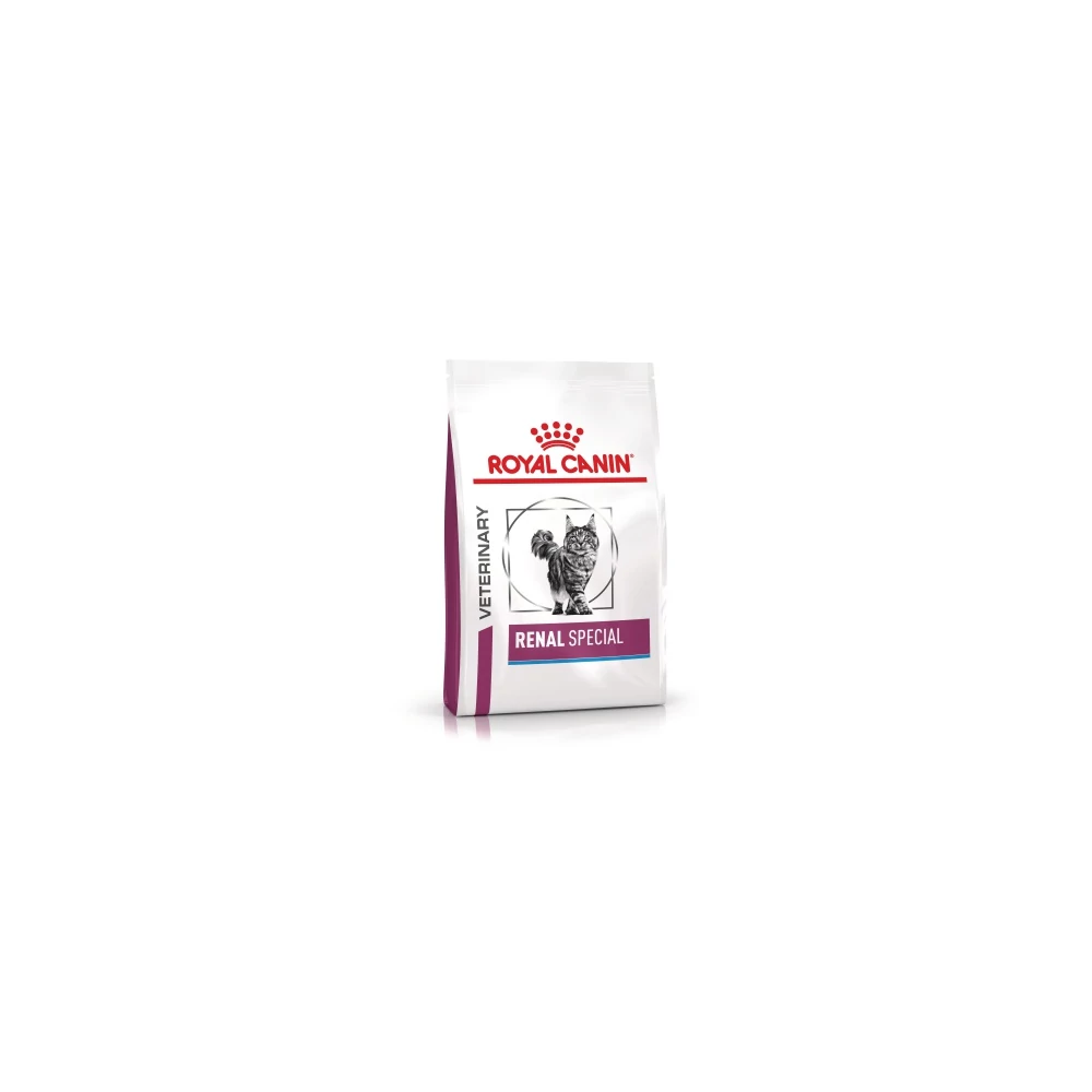 Komplett, száraz diétás macskaeledel, amely krónikus veseelégtelenség esetén támogatja a veseműködést, korlátozott mennyiségű foszfor- és csökkentett, de kiváló minőségű fehérjetartalmának köszönhetően. Mielőtt állatgyógyászati diétás száraz- vagy nedves tápot ad kedvencének, mindenképpen keresse fel állatorvosát, kérje ki szakvéleményét. Az ilyen tápok  használatának ideje alatt az állat rendszeres felügyelete, állatorvosi kontrollvizsgálata javasolt. Amennyiben kedvence állapota ezen időszak alatt romlana, mindenképpen jelezze ezt állatorvosának és kérje szakvéleményét. A RENAL SPECIAL száraz eledel összetétele folytán csökkenti az oxalát húgykő képződést, csökkentett kalcium- és D vitamin-tartalmának, illetve vizelet lúgosító tulajdonságainak köszönhetően. TÁMOGATJA A VESEMŰKÖDÉST A veseműködés támogatására ajánlott, alacsony foszfortartalmú és mérsékelt, de magas minőségű fehérjét tartalmaz, ezzel javítva a macska életminőségét. ADAPTÁLT ENERGIATARTALOM Az adaptált energiatartalom csökkenti a szükséges táplálék mennyiségét és segít ellensúlyozni a csökkent étvágyat. AROMÁS VÁLASZTÉK A speciális aromaprofil a különleges tápszemcse formával együtt segít stimulálni a macska étvágyát, különösen táplálék averzió esetén. ÖSSZETÉTEL: kukoricaliszt,rizs,dehidratált sertésfehérje*,állati zsiradékok,kukoricaglutén,növényi rostok,kukorica,hidrolizált baromfifehérje,ásványi anyagok,búzaglutén*,cikóriapép,halolaj,szójaolaj,palmitin- és sztearinsavak citromsavval észterezett mono- és digliceridjei,psyllium (útifű) maghéj és mag,frukto-oligoszacharidok,bársonyvirág por.Fehérjeforrások:dehidratált sertésfehérje (14,4 %),kukoricaglutén (8 %),hidrolizált baromfifehérje (5 %),búzaglutén (2,7 %).