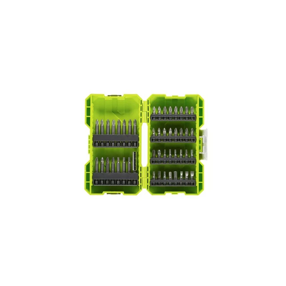 A Ryobi egy japán autó-, elektronikai- és távközlési alkatrészeket gyártó cég, de nyomdai berendezéseket, elektromos szerszámokat és építõipari eszközöket is értékesít. A Ryobi vállalat célja, hogy csúcsminõségû, innovatív termékeivel és szolgáltatásaival nélkülözhetetlenné váljon a piacon, és megfelelõ választ adjon az ügyfelek és a társadalom igényeire.A készlet tartalma: 32 db 25 mm-es bithegy 8 db Philips (2x PH1, 4x PH2, 2x PH3) 10 db Pozidrive (2x PZ1, 6x PZ2, 2x PZ3) 8 db Torx (TX10, 2x TX15, 2x TX20, 2x TX32, 2x TX3 3 db Hex (4 mm, 5 mm, 6 mm) 3 db hornyolt (4,5 mm, 5 mm, 6,5 mm) 15 db 50 mm-es bithegy 5 db Philips (PH2) 7 db Pozidrive (PZ2) 3 db Torx (TX20, TX25) 1 db 60 mm-es mágneses bittartó
