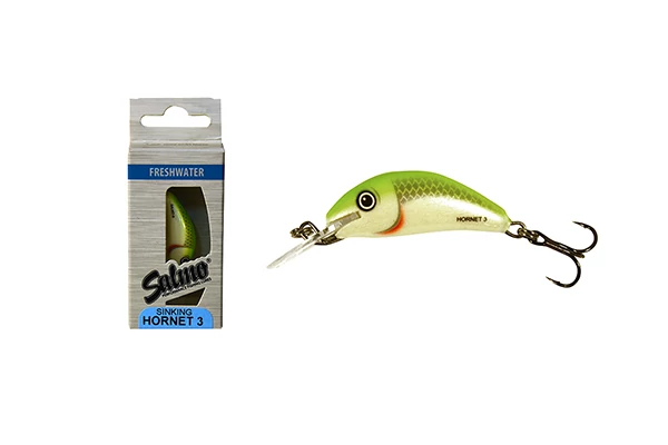 Amióta csak létezik a Salmo család a Hornet típus a legeladottabb, legnépszerűbb változat. Méretét tekintve találhatunk köztük kivételesen apró, átlagos méretű és nagy csalikat is . Nagyon gondosan készül, komoly precizitás szükséges ahhoz, hogy apró méretben is nagy sebességgel tudjuk vontatni anélkül, hogy kitörjön a számára megszabott útvonalból. Kis súlya ellenére megfelelő felszereléssel jól dobható. Többféle méretben, háromféle terelőlemezzel, úszó, süllyedő és mélyretörő kivitelben is kapható. Halfajok: pisztráng, sügér, csuka, balin, domolykó Speciális helyek, szituációk: Általánosan talán a legjobban használható típusa a családnak