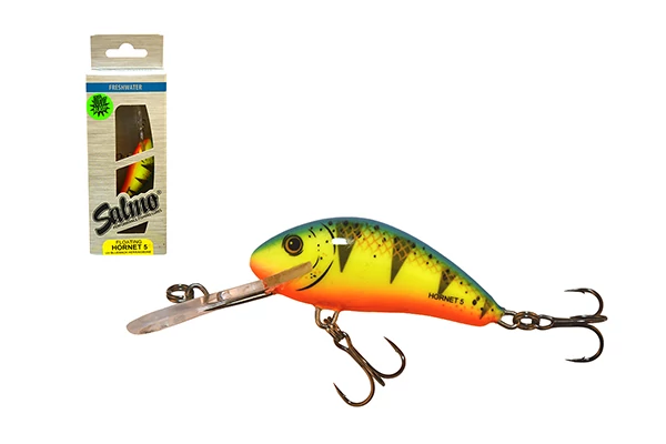 Amióta csak létezik a Salmo család a Hornet típus a legeladottabb, legnépszerűbb változat. Méretét tekintve nem nagy, mégis hihetetlenül eredményesen horgászhatunk vele. Nagyon gondosan készül, komoly precizitás szükséges ahhoz, hogy apró méretben is nagy sebességgel tudjuk vontatni anélkül, hogy kitörjön a számára megszabott útvonalból. Kis súlya ellenére megfelelő felszereléssel jól dobható. Ötféle méretben, háromféle terelőlemezzel, úszó, süllyedő és mélyretörő kivitelben is kapható. Halfajok: pisztráng, sügér, csuka, balin, domolykó Speciális helyek, szituációk: Általánosan talán a legjobban használható típusa a családnak